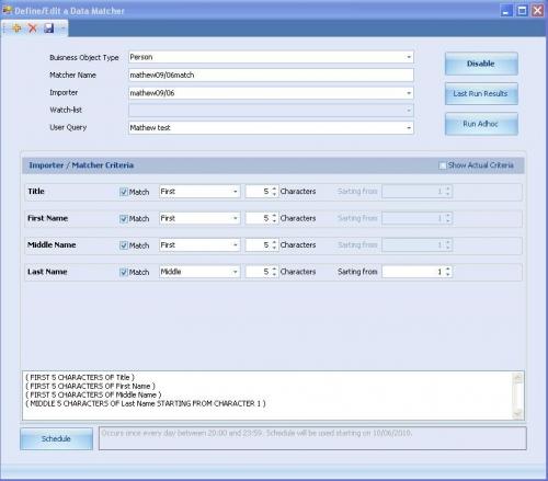 The Data Matching Module features an importer that can input data on persons, accounts and entities in any format from external sources and match this data against the FIU's report database. The data matching process can be run on an ad hoc basis. When it is run as a scheduled task at regular intervals, the matching process can automatically create analytical case proposals.