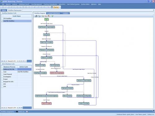The Workflow System allows multiple workflows to reflect the standard operating procedures applied to different aspects of an FIU's business. The system allows separate workflow processes to be applied to different tasks and activities. For example, a workflow can be applied to the initial analysis of reports. However, if a report is escalated to a case proposal, a different workflow process might commence. If the matter is escalated further, another workflow process might drive the task to its conclusion. Each workflow is configurable to the requirements of the FIU.